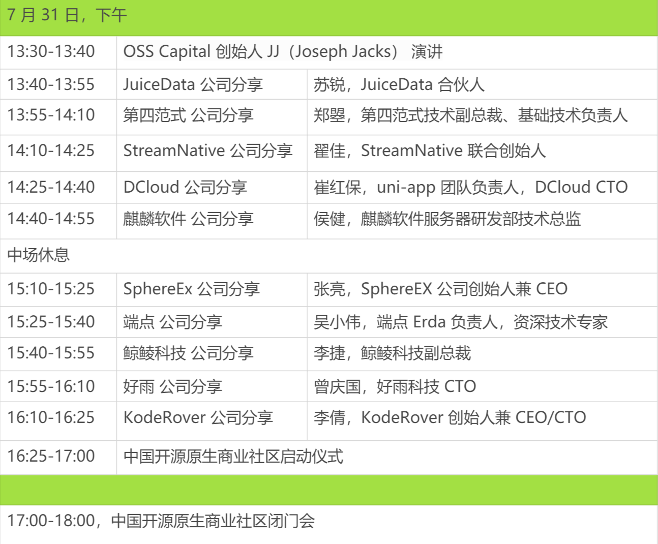 为进一步支持中国开源事业的发展,7 月 31 日下午,GOTC 全球开源技术峰会将邀请众多开源原生商业公司代表齐聚「开源原生商业」专题论坛,为现场观众呈现一幅中国开源原生商业公司版图。届时,由国家工业信息安全发展研究中心(工业和信息化部电子第一研究所)与开源中国牵头,并联合二十余家公司发起的「中国开源原生商业社区」将正式启动,共同组建一个互惠互利,携手共进的开源社区。