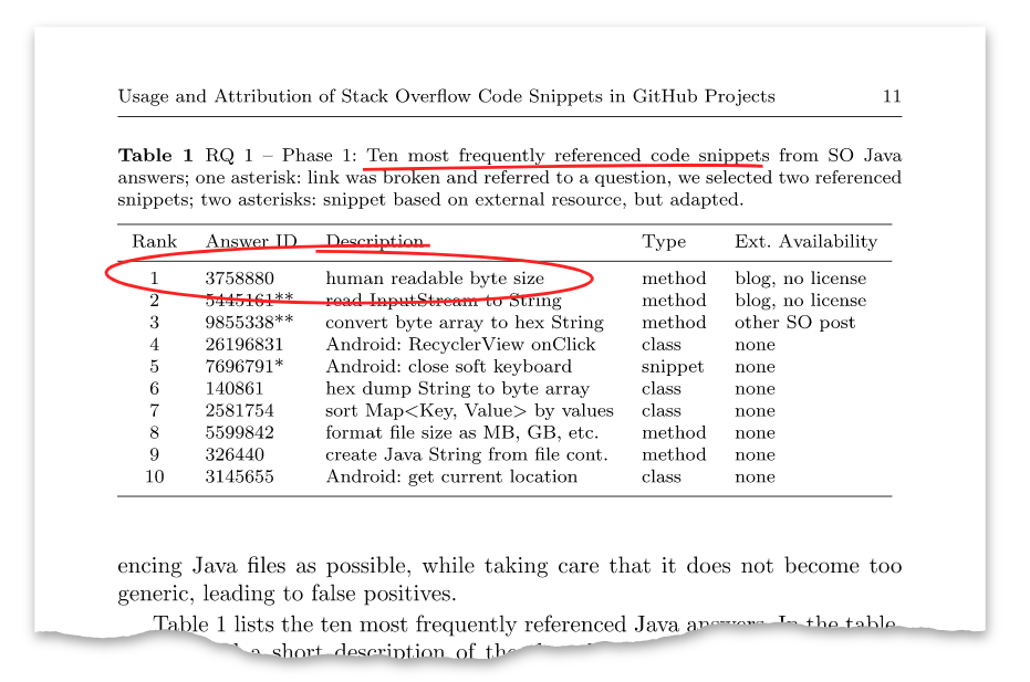 到了2018年,一位名叫Sebastian Baltes的博士生在《Empirical Software Engineering》杂志上发表了一篇论文,题为《Usage and Attribution of Stack Overflow Code Snippets in GitHub Projects》。