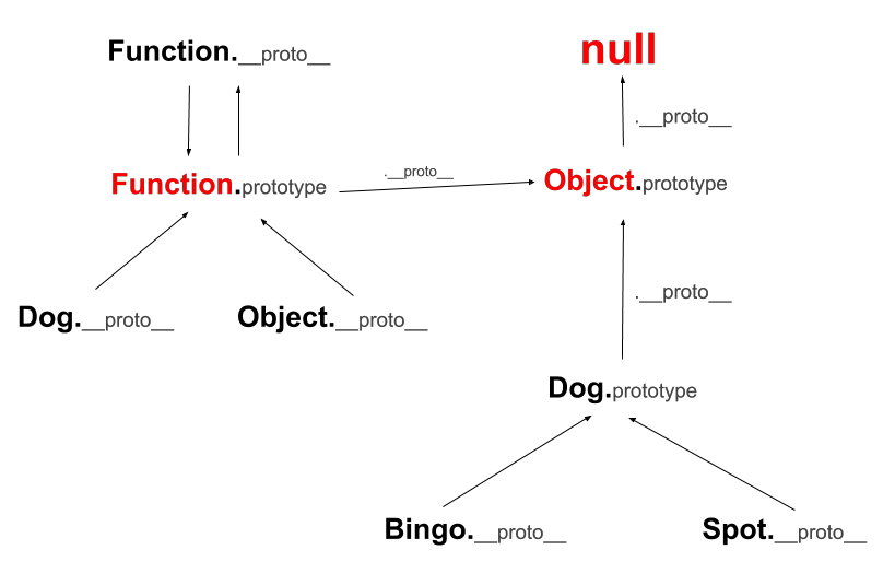 原型链层层向上直到一个对象的原型(__proto__)对象为 null 为止。根据定义,null 没有原型,所以 null 就作为这个原型链中的最后一个环节。在 JavaScript 中 Object 对象的原型(prototype)对象的 __proto__ 为 null,因此在 JavaScript 中 Object 对象就是原型链的尽头。几乎所有 JavaScript 中的对象都是位于原型链顶端的 Object 的实例。