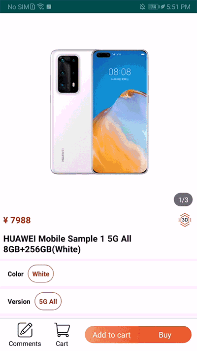 图形引擎服务助力电商开发者在App中展示商品的高品质3D模型,为用户带来更吸引人的商品展示视觉体验。更有AR Engine融合虚拟与现实,实现线上试穿试戴商品,打造身临其境的购物体验感,增强线上购物趣味性,提升用户购买转化率。