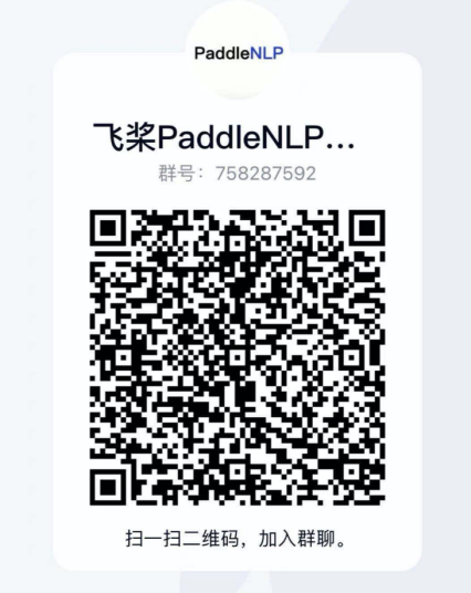 如果你在学习过程中遇到任何问题或疑问,欢迎加入PaddleNLP的QQ技术交流群!