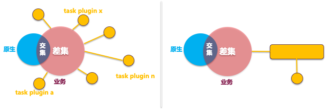 当调度原生的任务类型无法满足业务线的个性需求时,需要不断地去适配,并且适配内容间鲜有共性,无法复用。对此,调度可以将差集内的任务执行策略交由业务自定义,自身负责策略模板的提供与执行策略的解析与管理。