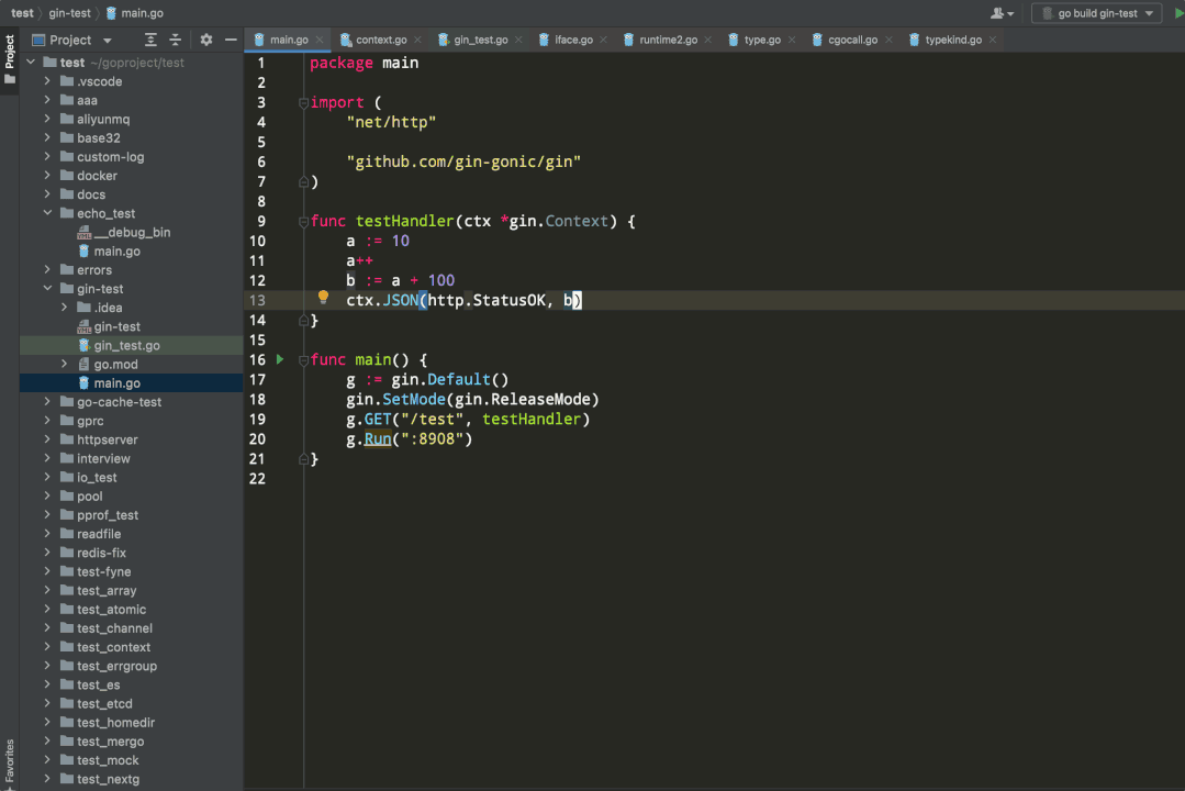 更多时候我喜欢使用 goland 调试代码,基本满足日常的开发需求。这里分享几种进入 debug 模式的方式。