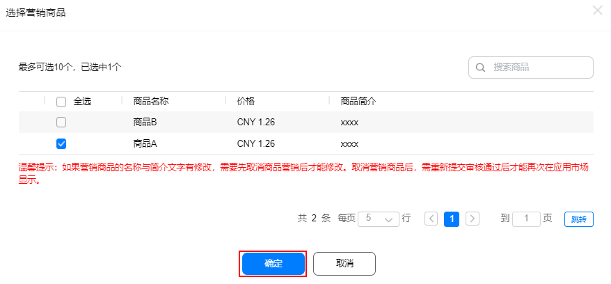 (3)选择需要营销的商品,点击“确定”。