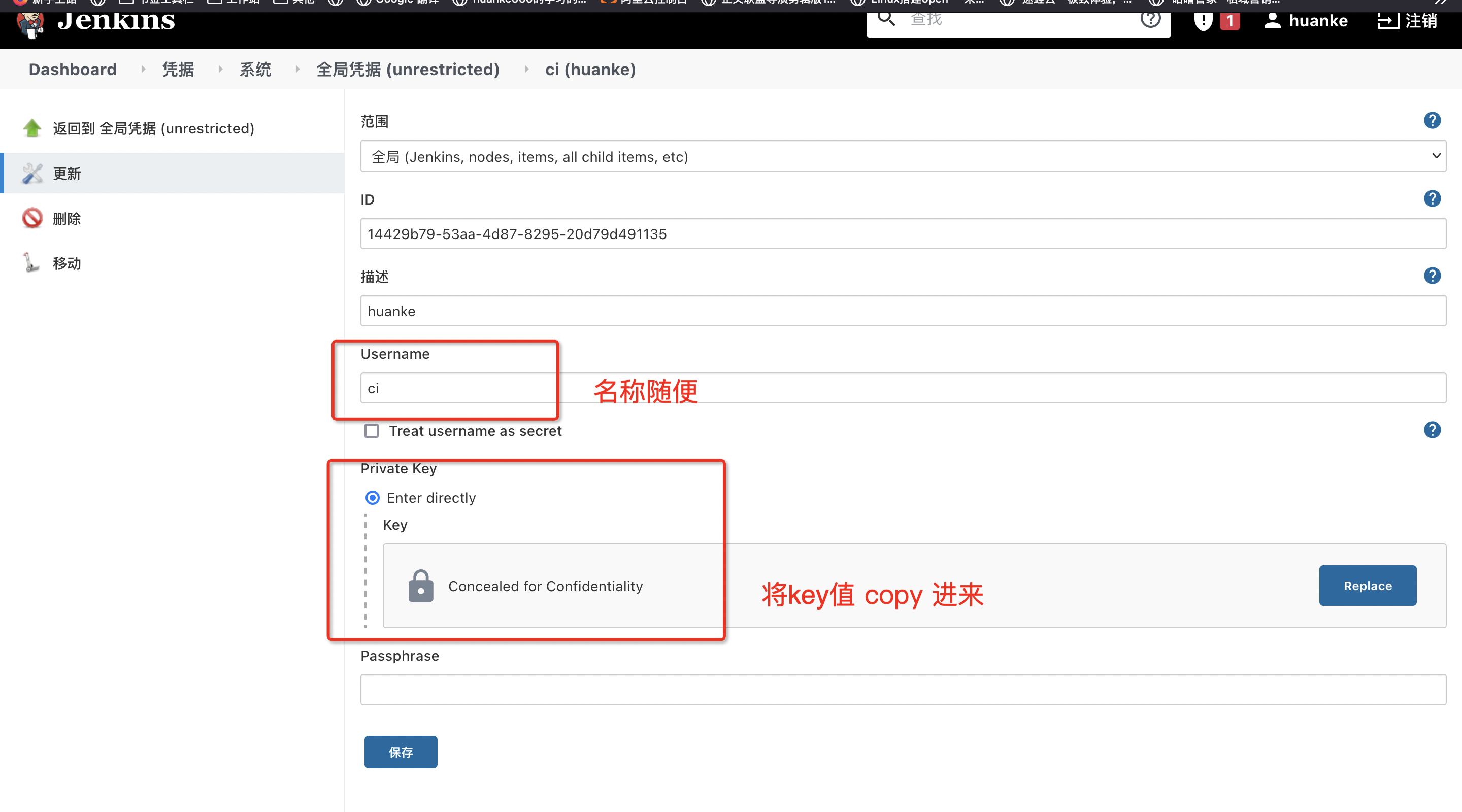 - Jenkins服务器生成密钥: