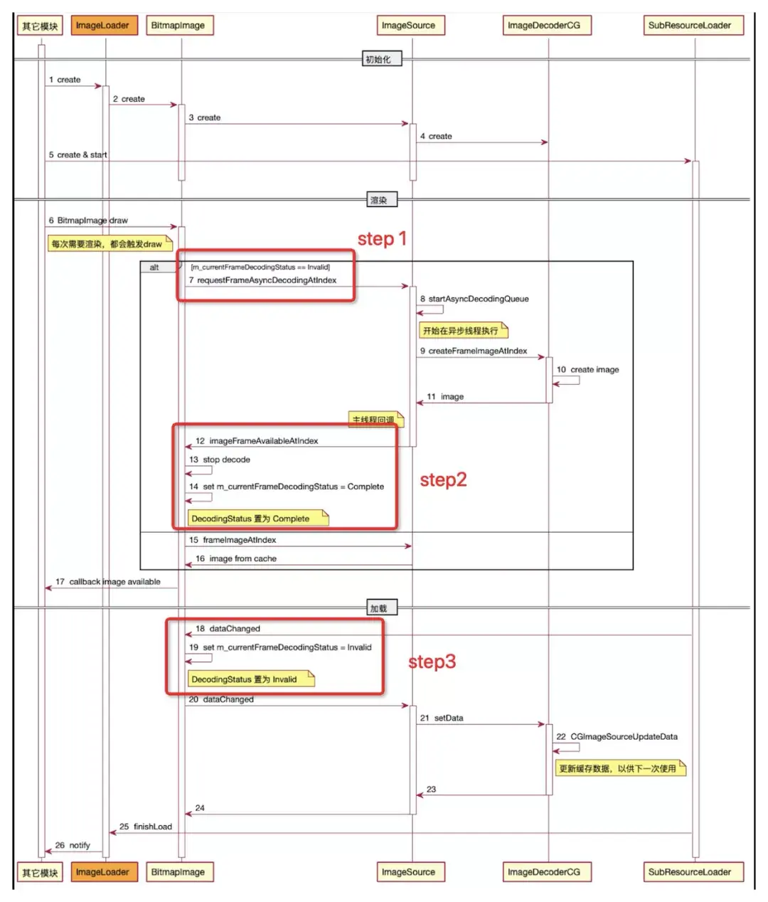 问题即出现在上述 step1, step2, step3 的执行顺序上。在异常情况下,会偶现执行顺序为:step1 -> step3 -> step2, 且 step3 不再被触发(allDataReceived),进而导致图片最终的内容未渲染上屏。