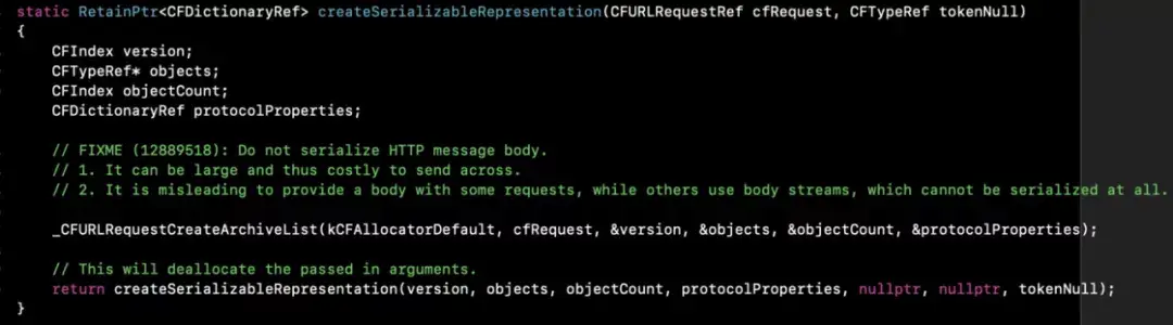 由于从 Networking 进程将数据发送到 App 进程时,WebKit 内有意剥离了 Body 部分(见 WebCoreArgumentCodersMac.mm):