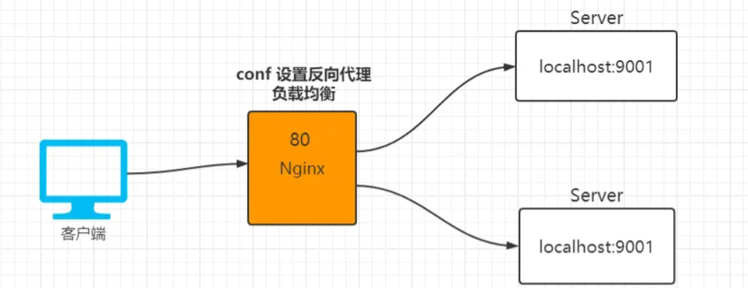 我们要做的就是将localhost:80代理localhost:9001和localhost:9002这两个服务,并且让轮询访问这两个服务。