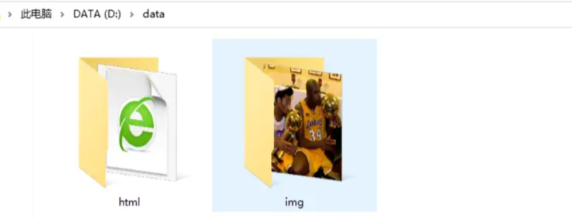 1、将静态资源放入本地新建的文件里面,例如:在D盘新建一个文件data,然后再data文件夹里面在新建两个文件夹,一个img文件夹,存放图片;一个html文件夹,存放html文件;如下图: