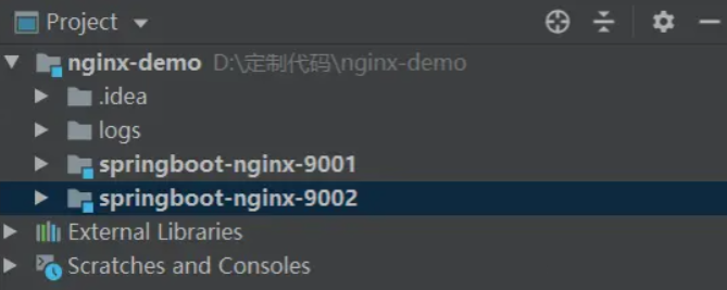 我们在windows下演示,首先我们创建两个springboot项目,端口是9001和9002,如下: