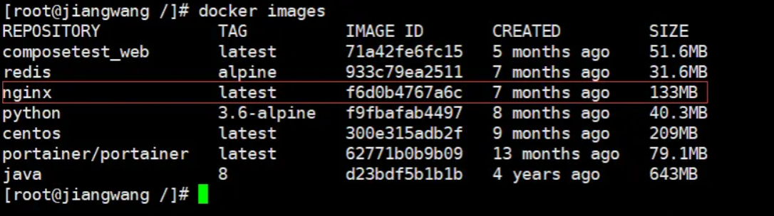 1、查看所有本地的主机上的镜像,使用命令docker images