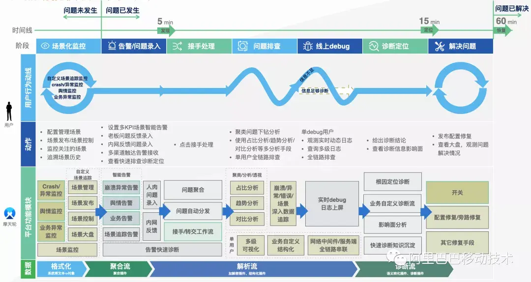 - 依据诊断结果给出解决方案或提出整改需求,形成从需求->研发->发布->监控->排查->诊断->修复->需求的闭环。