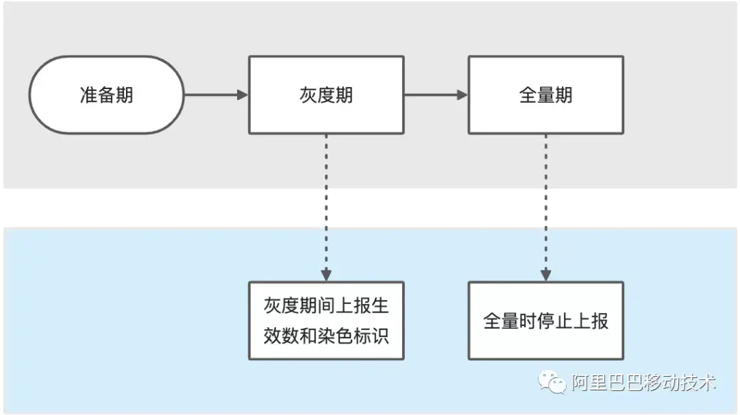 对于染色SDK我们是希望在灰度期间可观测,提早发现问题,不把变更导致的问题带到线上全量环境中,所以我们把发布过程定位为三个阶段: