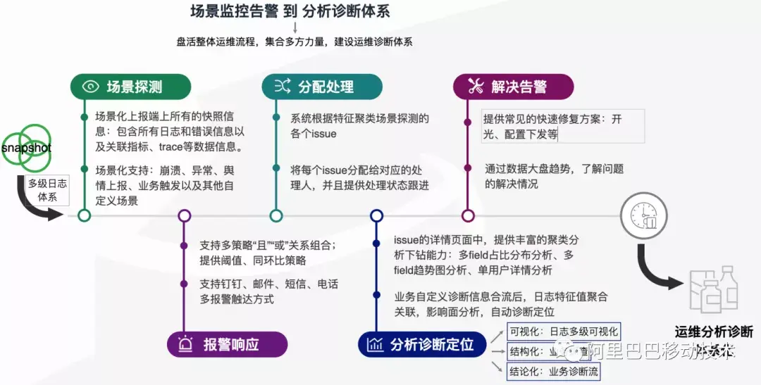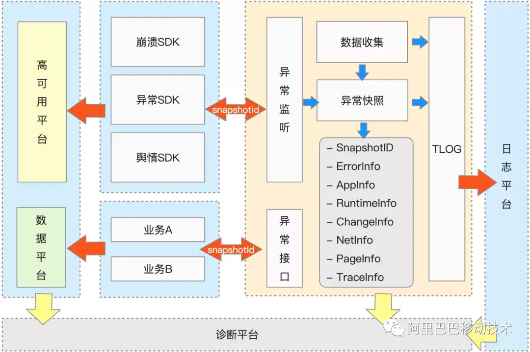 快照数据随着端侧能力的加强也会越来越丰富。收集到的快照信息会上传到诊断平台,平台之间可以利用snapshotID进行数据关联。对于诊断平台来说,可以根据快照信息、日志信息对异常进行分析,给出初步的诊断结果。