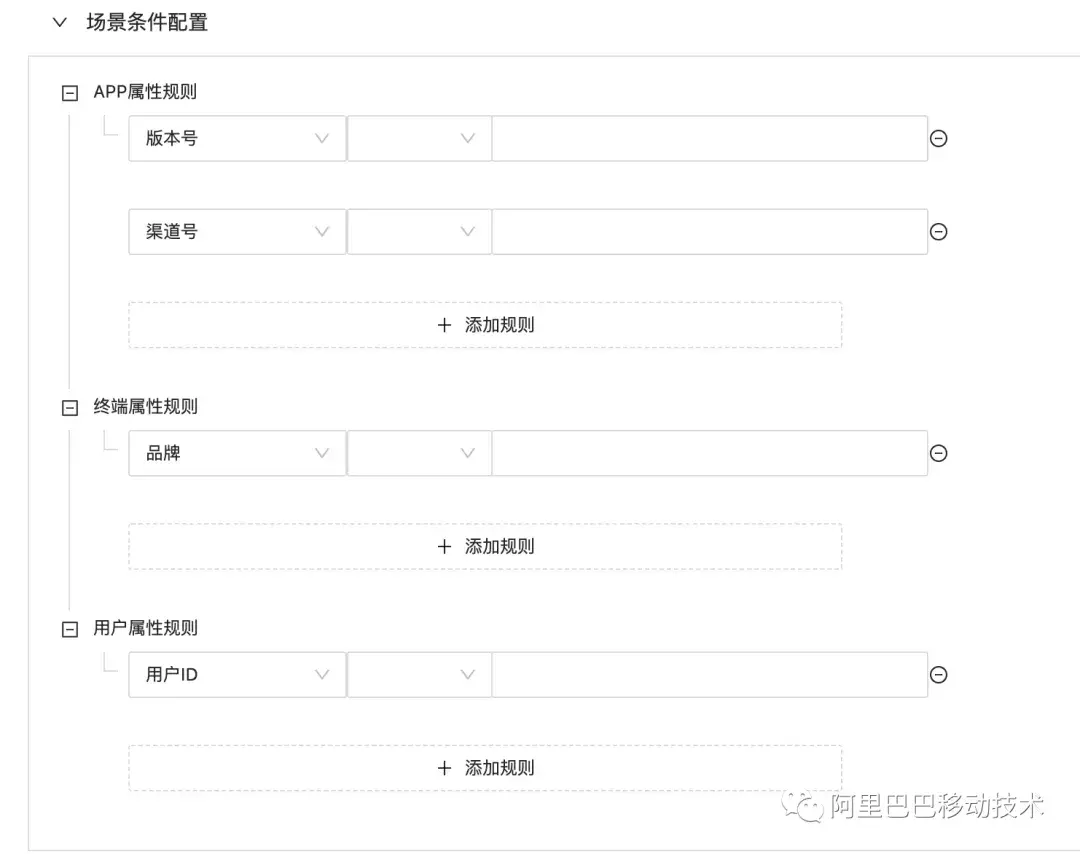 平台和端侧也都支持定向下发配置的能力,通过指定一些基础的条件,可以针对不同设备,不同用户进行有针对性的场景下发。