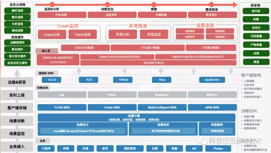 - 异常监控:这个以Crash SDK为代表,主要收集端侧的Crash信息,还有收集异常、用户舆情等相关的SDK;
