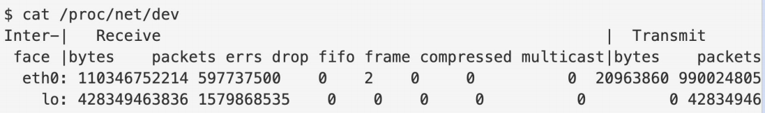 通过 sysfs 的接口,可以看到网卡的丢包数,这就是系统出现异常的一个标志。