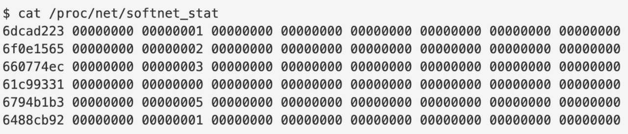 下面说明了文件中每个字段都是怎么来的,实际情况可能会有所不同,因为随着内核版本的迭代,字段的数量以及字段的顺序都有可能发生变化,其中与网络数据处理被中断次数相关的就是 squeeze 字段: