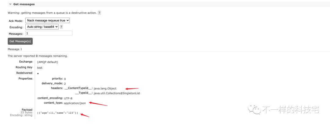 template.convertAndSend("test", Collections.singletonList(new User(20, "不一样的科技宅")));
