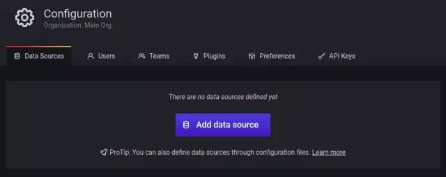 接下来要做的是添加一个数据源。单击左侧边栏中的“配置”图标,然后选择“Data Sources(数据源)”。