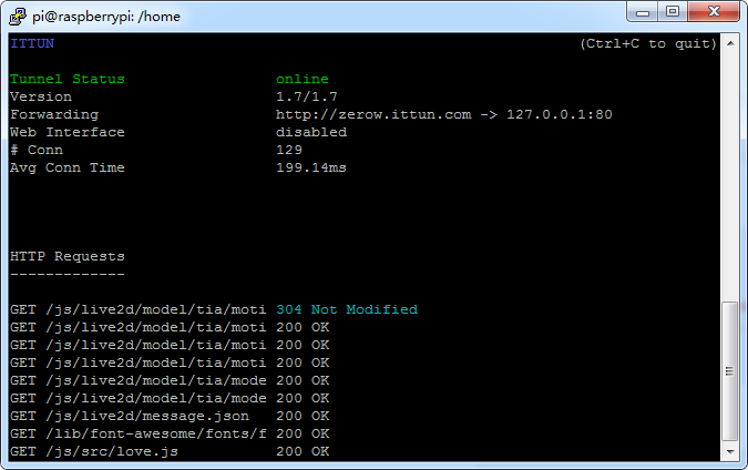 这是正常运行时的截图,访问 http://zerow.ittun.com/ 时可以...