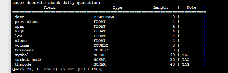 - 标的本身包括标的信息,直接将标签信息作为超级表的标签列,每个品种作为子表。