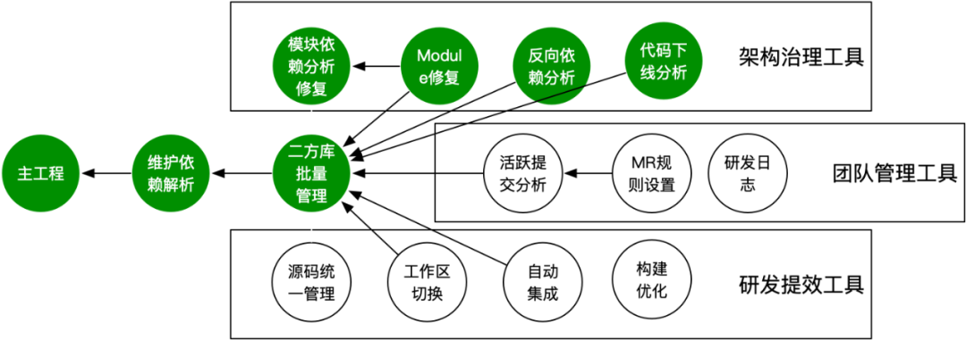 进行架构治理后,模块的循环依赖和modula规范等问题得到解决,但今后可能出现二次腐化。我们当然不希望隔一段时间又要重新治理,于是从架构设计和研发流程的卡口入手,优化架构和流程,杜绝后续的二次腐化。