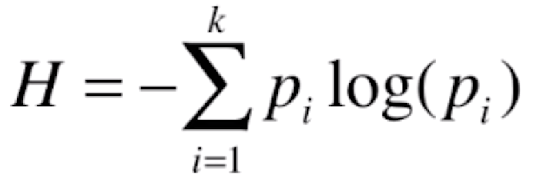 信息熵是信息论的基础概念,熵在信息论中代表随机变量不确定度的度量。熵越大,数据的不确定性越高;熵越小,数据的不确定性越低。熵是从物理热力学中引申出来的概念,熵越大,在一个封闭的热力系统中,分子无规则运动越剧烈,即不确定性越高;熵越小,封闭的热力系统中,分子越倾向于静止状态,它们的状态就越确定,即不确定性越低。我们来看一下香农提出来的信息熵公式。
