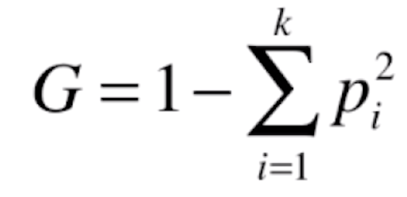 除了信息熵可以对决策树的指标进行划分,还有另外一个指标可以对决策树进行划分,这个指标就是基尼系数。基尼系数的公式如下
