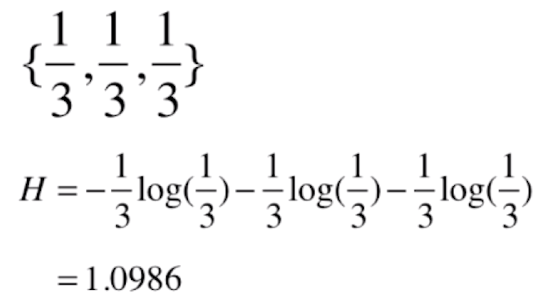 对于鸢尾花的这种各占1/3的分类,它的信息熵就为