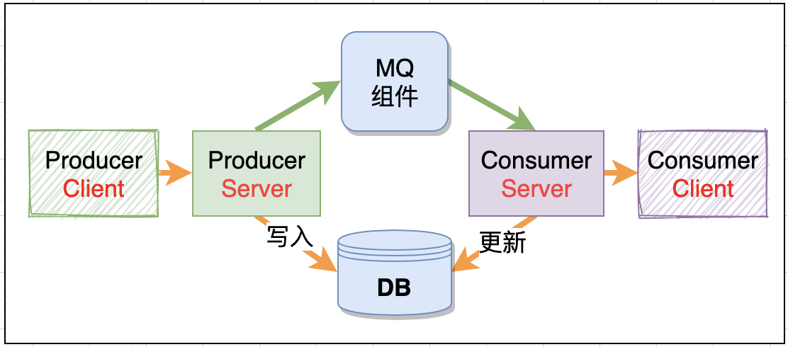 在整体的技术难度上没有太多差别,但是引入两个服务【生产和消费】,用来管理MQ通信流程,适配特定的业务逻辑,引入数据库做一次落地存储,在异常流程的处理上更加灵活,这样整个消息模块具有很强的可扩展性。