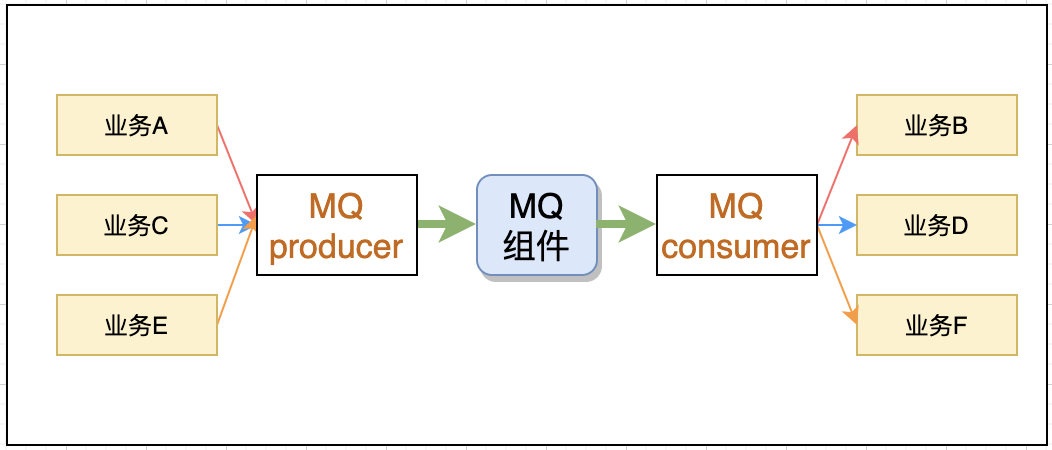 在某创业公司研发初期,业务线上存在五个项目并行开发的情况,当时对于MQ的使用状况如下: