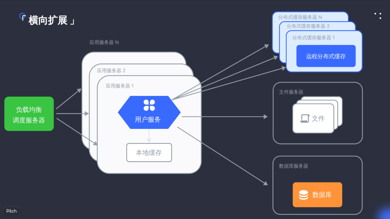 在进行水平拆分时我们不能忽略缓存问题。在单机模式下缓存都是本地缓存,而当我们成为分布式后,如果有一个服务器拿到 token 并存到本地,另一个服务器就会因为没有拿到而无法通信。因此我们引入分布式缓存,比如将缓存放到 Redis 这种分布式缓存里,让所有应用都请求 Redis 拿缓存。