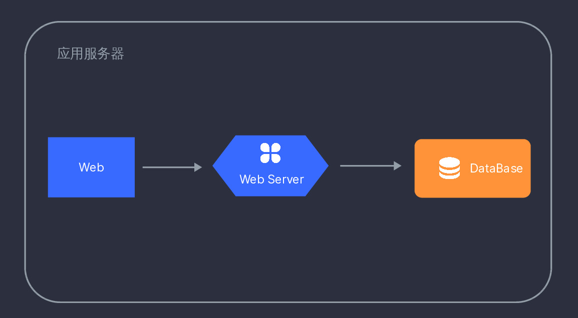 上图中示意的单体应用构架是早期常用的模式。早期因为人手紧缺通常会将 Web 和 Server 一起开发再一起部署,之后和数据库连在一起就可以正常提供服务。这么做的优点是维护简单,但是迭代比较麻烦。