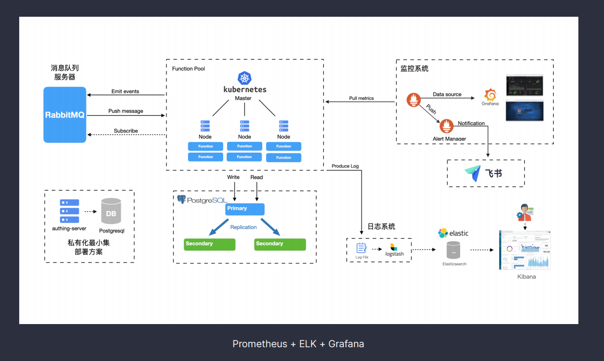 上图是 Auting 的日志和监控系统。中间是 K8S 集群,左边是业务上的消息队列,右边则是我们的监控系统。监控系统我们只要是使用 Grafana 根据业务报警,比如我们会配置当成功率低于多少时就报警的情况。主要的日志系统则是使用 logstash 抽取 log 文件到 ES 内使用 Kibana 查看。