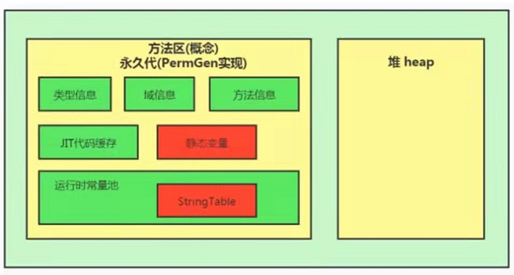 - jdk1.6 及之前:有永久代 ,静态变量存放在永久代上;