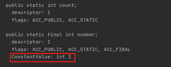 通过图片我们可以看出被声明为 final 的类变量的处理方法是不一样的,全局常量在编译的时候就被分配了。