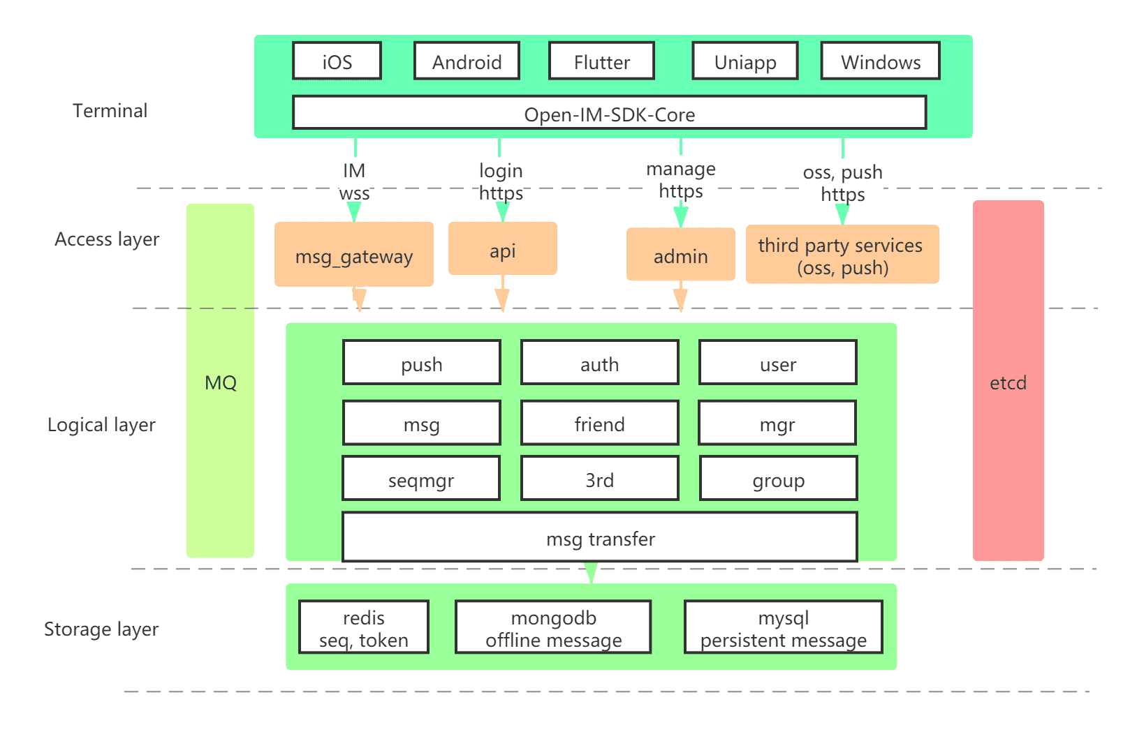11、Open-IM-Server:基于 Go 实现的轻量级即时通讯(IM)项目。具有高性能、易扩展、安装简单、私有化部署等特性,同时包含多种客户端 SDK。从服务器到客户端一体的开源即时通讯(IM)解决方案