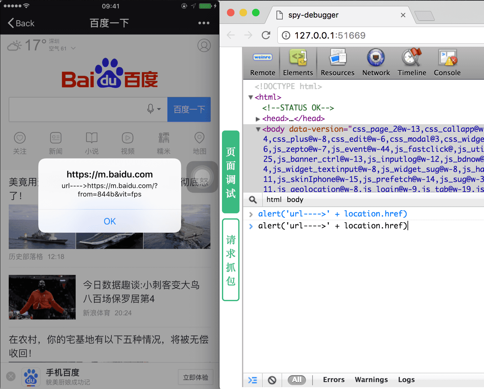 21、spy-debugger:远程调试手机页面和抓包的工具。操作简单仅需手机和电脑在同一个 WIFI 下,即可在实现真机调试页面