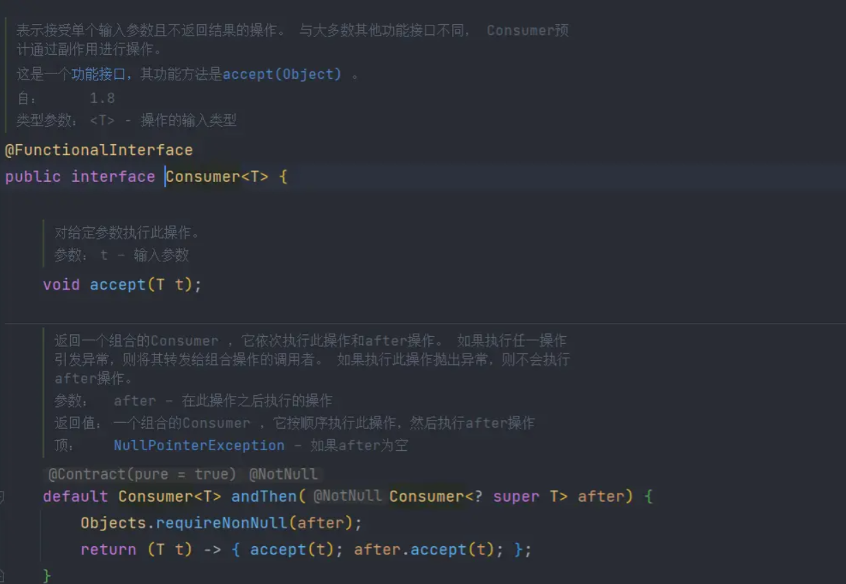Consumer消费型函数和Supplier刚好相反。Consumer接收一个参数,没有返回值