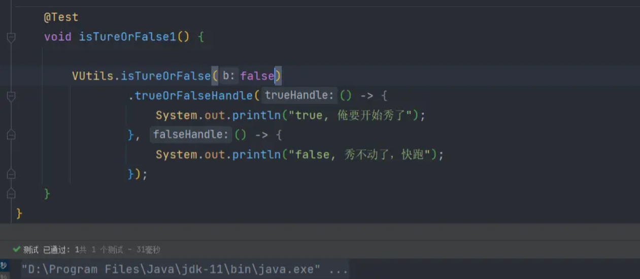 创建一个名为isTureOrFalse的方法,方法的返回值为刚才定义的函数式接口-BranchHandle。