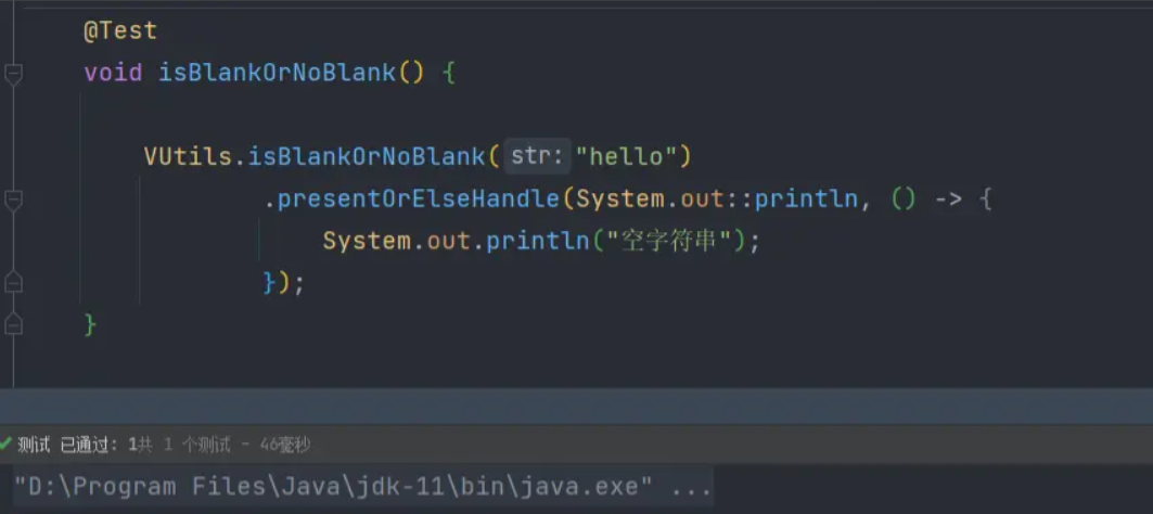 创建一个名为isBlankOrNoBlank的方法,方法的返回值为刚才定义的函数式接口-PresentOrElseHandler。