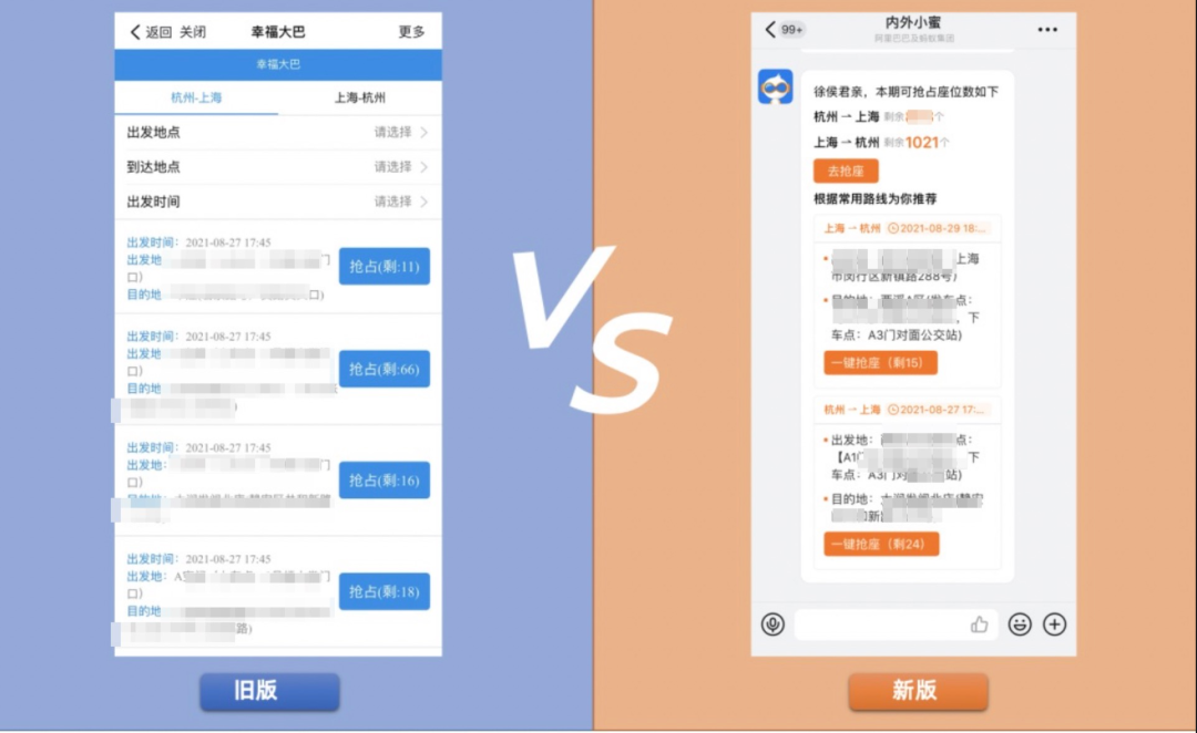 | 以前H5页面的抢座流程 | 现在卡片应用的抢座流程 |