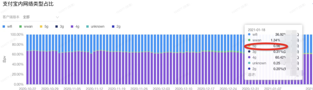毫无疑问,5G即使再搞几个元年,对于用户生态的渗透是毫无疑问的,从支付宝网络技术的雷达上看,我国2021年1月上旬,SA网络部署速度明显加快,目前已经「高」达5‰的访问PV比例,上月同期仅徘徊在1‰。