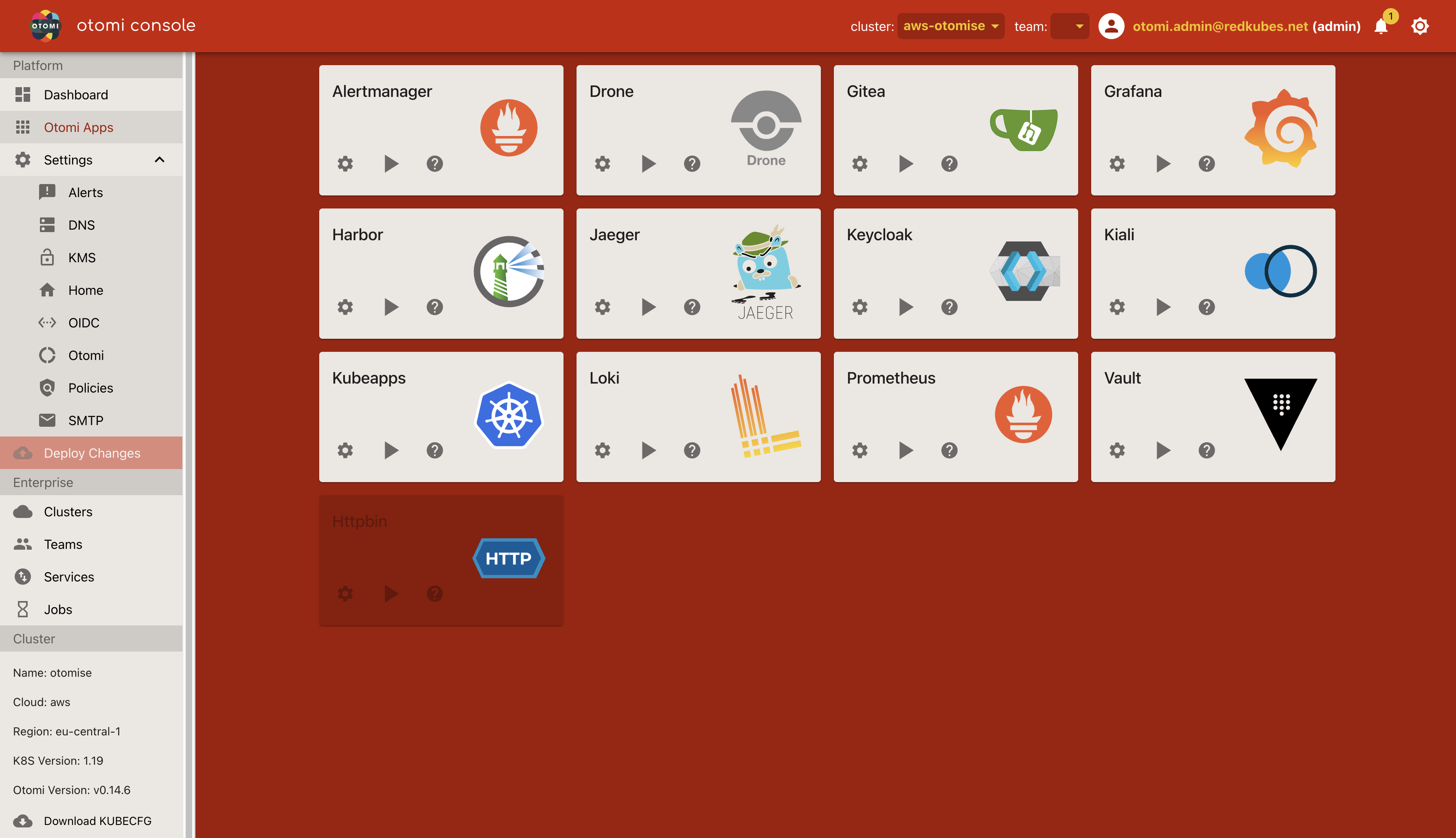 Otomi 是一个开源的基于 Kubernetes 的平台,它提供了类似于 Linux 桌面环境的用户界面,你可以像部署 Linux 中的软件包一样部署 Kubernetes 中的应用。默认已经集成了 Istio、Knative、Prometheus、Harbor、Keycloak、Nginx ingress、External-DNS、Cert-manager、Hashicorp Vault、Gatekeeper、Drone、Gitea 等项目,开箱即用。