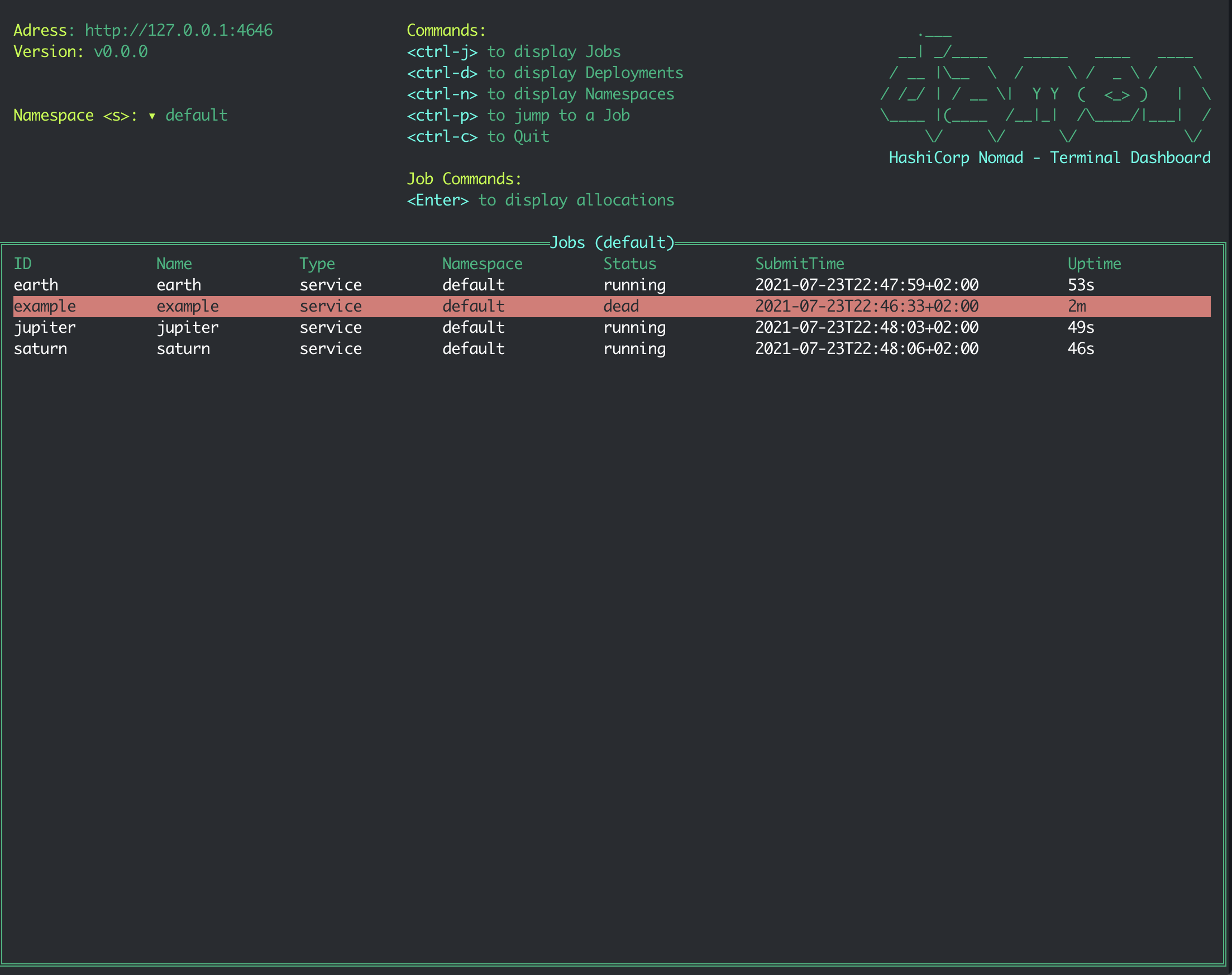 Damon 是 Nomad 的一个终端用户界面(TUI),可以用来管理 Nomad 的 Jobs、Deployments 和 Allocations 等资源。该项目目前还在持续增加新功能中。