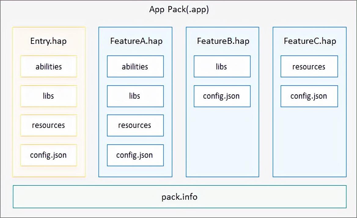 鸿蒙OS的应用软件包以APP Pack(Application Package)形式发布,它是由一个或多个HAP(HarmonyOS Ability Package)以及描述每个HAP属性的pack.info组成。HAP是Ability的部署包,HarmonyOS应用代码围绕Ability组件展开。
