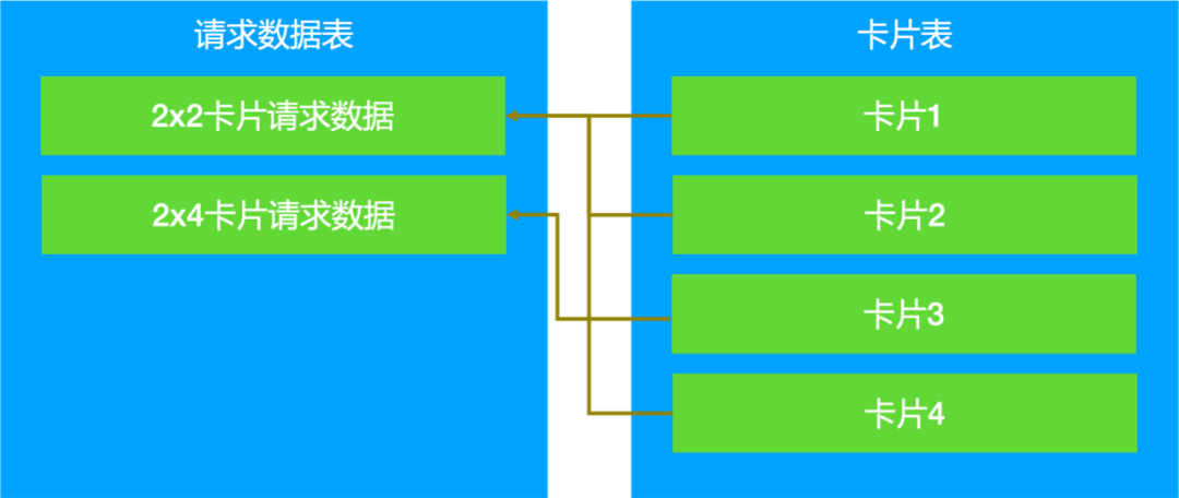 针对卡片数据的特点,我们使用了两个数据库表来存储卡片的缓存数据。根据卡片大小不同,请求中会提供不同的参数给服务端。反过来说,同样大小的卡片发出请求的参数是相同的,也就是说同样大小的卡片请求得到的数据是相同的。所以有一个表用来存储不同大小的卡片数据,每个卡片大小对应一条记录,包括唯一标识、卡片大小、请求返回的数据、时间戳等。