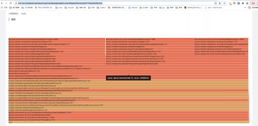 - 通过腾讯 jvm 团队的帮助下,我们定位了 auditlog 开启成为了我们纯读场景的瓶颈,通过设置 alluxio.master.audit.logging.enabled=false 关闭审计日志后,吞吐提升7 倍。通过 kona-profiler 抓取的火焰图,发现了使用 ROCKSDB 的元数据管理方式会增加性能开销,下一步我们计划将Alluxio 改用 HEAP 元数据管理方式。