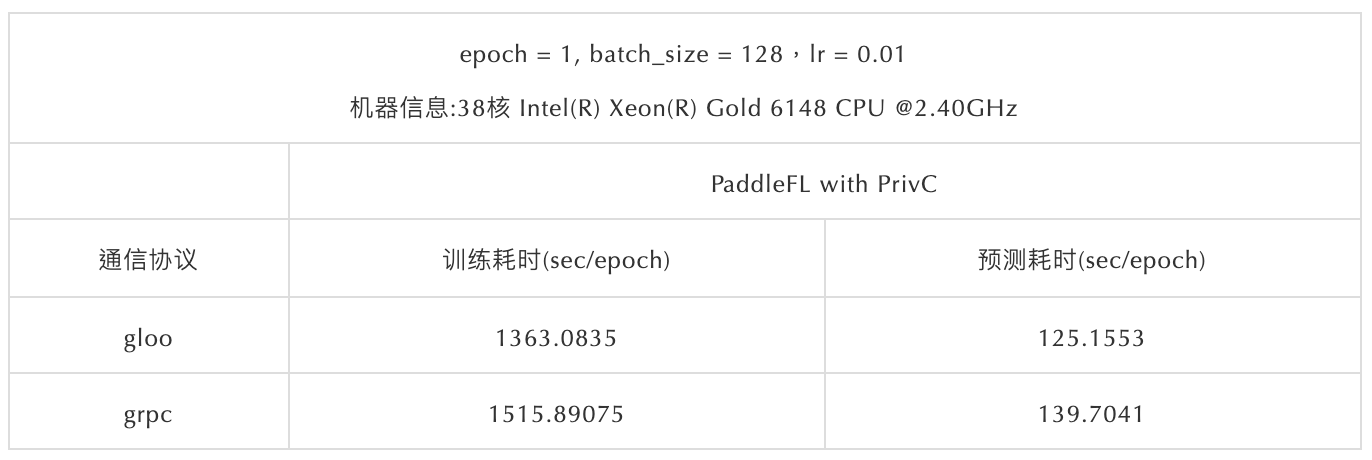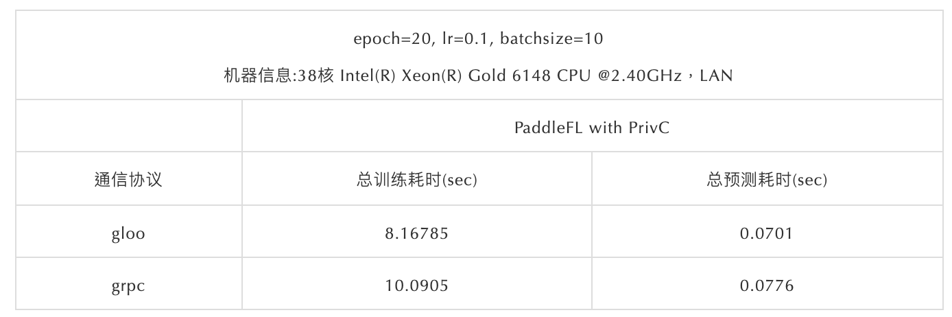 PaddleFL 在 PrivC 协议的基础上,为只有两个参与方情况下的联邦学习场景提供了针对性的解决方案。PaddleFL 目前提供了纯两方的矩阵乘法、fc、relu、sigmoid、softmax 等机器学习常用算子及其梯度计算实现,支持两方场景下的线性回归、对率回归、多层感知机等模型的训练与预测,具有优良的性能。